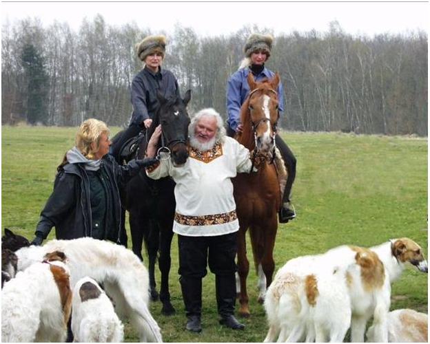 ![]() Tarek mit seinen Barsois: 2 Kinder von Veter und der 11jährige Archibald iz Tomilino Tarek mit Fenris, Feja und Girka ( Hanna mit Ivaro )