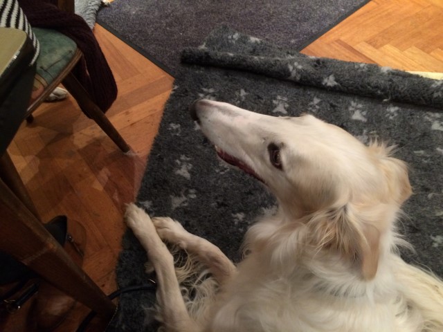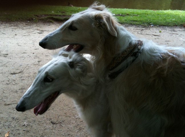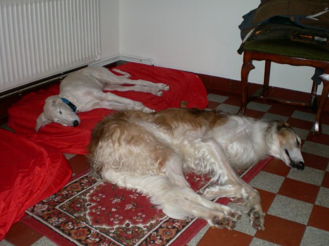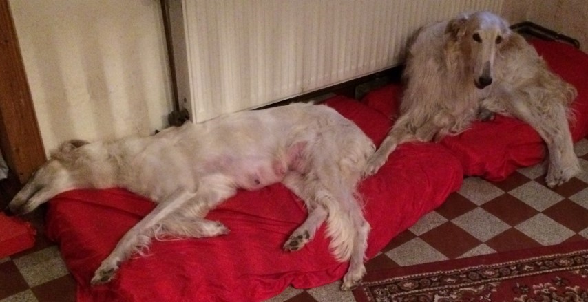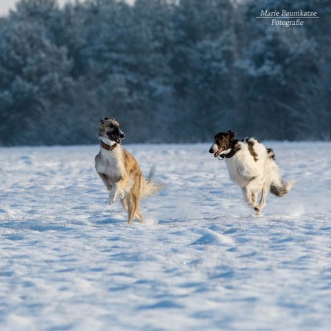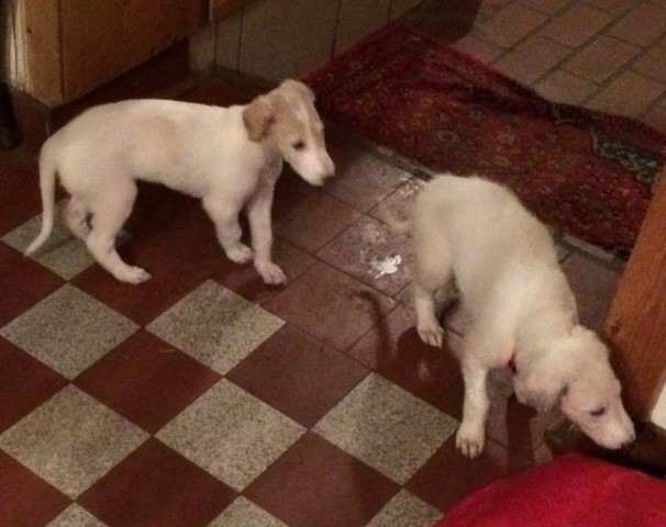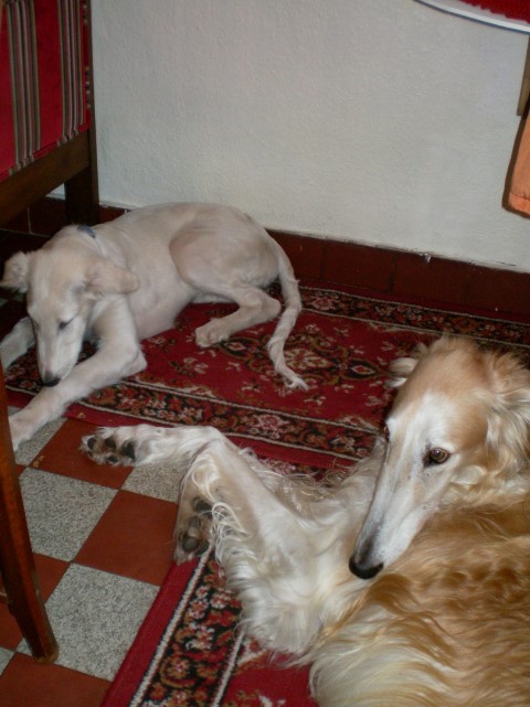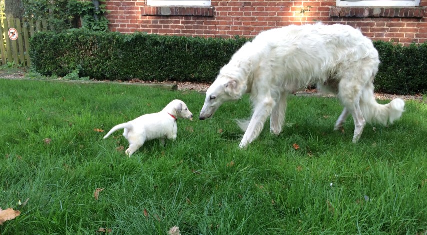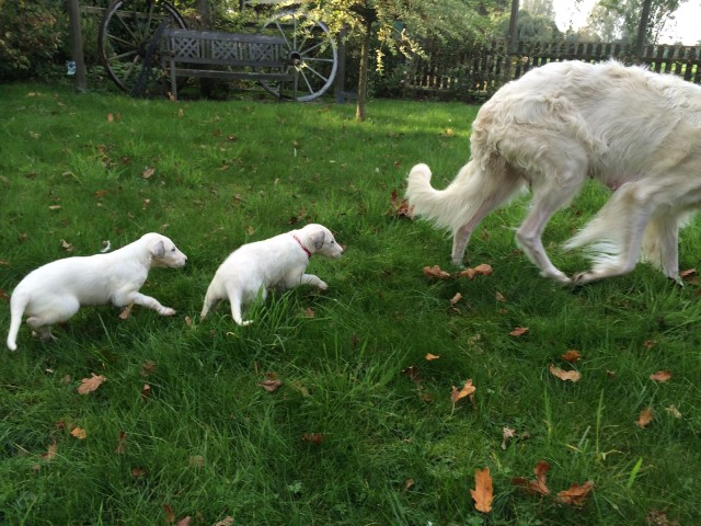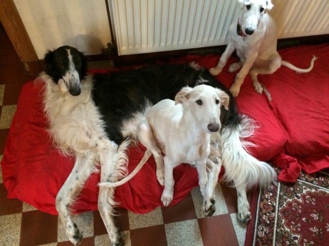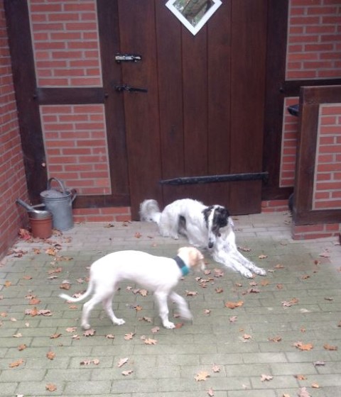 30.11.2014: Asja und Lea Raschi-Pack-Buran verstehen sich sehr gut. Asja lernt sehr viel von ihr, war sehr schnell "stubenrein", kann "sitz" und "pipi" auf Abruf und hört super. 01.12.2014: Neue Bilder von Oblonka aus Berlin: 29. - 30.11.2014: Barsoi-Meeting in Alsfeld! Darauf haben wir uns schon sehr gefreut: Sich austauschen und miteinander in unbeschwerter Atmosphäre schwetzen! Doch bis wir erst einmal angekommen waren ....! Unser Navi schickte uns in einer "Schleife" zum Ziel! Und dabei war es sowieso schon sehr weit! Doch wir hatten 2 schöne, interessante Tage und freuen uns schon auf das nächste meeting in 2 Jahren.
