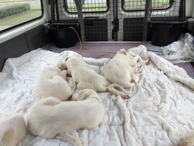 30.10.2014: Heute war für unsere Welpen ein ganz besonderer Tag: Impfen und Chipen! Das bedeutete, sie durften zum ersten Mal Auto fahren! Ich hatte schon die größten Befürchtungen, doch die Kleinen waren total entspannt und schliefen fast die ganze Fahrt über. Alle wurden auf "Herz und Nieren" untersucht, die Jungs waren "komplett", alle waren ohne jegliche Beanstandung, im Gegenteil, sie bekamen ein großes Lob.