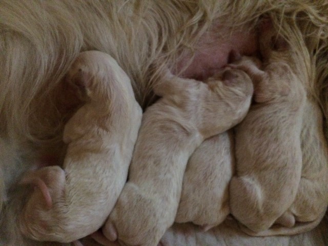 28.10.2014: Zwei Ereignisse haben den heutigen Tag bestimmt: Meine liebe Mutter mußte plötzlich ins Krankenhaus, was natürlich nicht schön ist und meinen Tagesablauf völlig veränderte, und am Abend ein interessantes Züchterseminar von Mars. Im ersten Vortrag ging es um Trennungsschmerz - wie lernt mein Hund, auch einmal alleine zu bleiben und im zweiten Vortrag ging es um Epilepsie bei Hunden, auch höchst interessant! 22.10.2014: Am 30.10. werden unsere Welpen gechipt und geimpft! Die ersten verlassen uns dann schon am 08. November! Und dann geht es "Schlag auf Schlag". Nur Aquamarin bleibt bei uns und wir hoffen, dass er sich auch so gut entwickelt wie Vater Niemen und Mutter High! Wir konnten uns ja lange nicht entscheiden, weil alle gleich schön sind, doch die Entscheidung wurde uns durch das Aussuchen der neuen Welpenfrauchen- und Herrchen abgenommen. Wir sind sehr froh darüber!