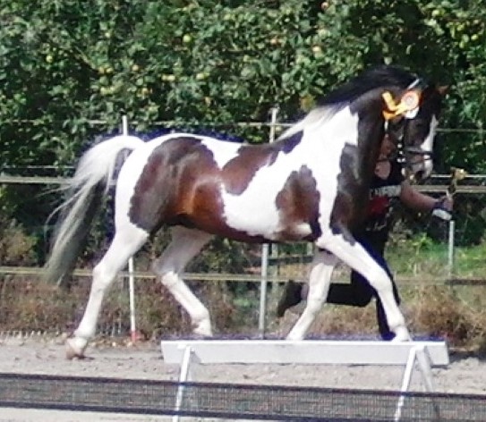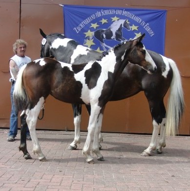 Man ist ja noch nicht ausgelastet genug! Wenn keine Hundeschau ist, dann muß man ja auf eine Pferdezuchtschau gehen! Ich mag mich selbst nicht fragen, wie blöde ich da bin! Statt die Füße hoch zu legen, ....! Und das ist der Unterschied: Auch, wenn der Paddock noch so gut abgezogen ist, wir laufen ( rasen!!! ) im tiefen Sand! Karin und ich hatten unsere beiden Hengste angemeldet ( ich wollte das gar nicht! ), und - wir sollten 2 Pferde eines Freundes vorstellen! Die wiederum gewannen alles und mußten in den Brilliantring und auch noch in den Championatsring! Also: Laufen, laufen, laufen! Und schwitzen,.... ! Nanu ja, unsere beiden Hengste haben jeweils ihre Rasseklasse gewonnen und somit waren wir schnell durch, aber die Stuten!!! Ich habe heute gelernt, sie zu hassen!!!! Laufen laufen, laufen! Ich weiß nicht, wie viele Pokale Georg - für den Karin und ich liefen - abgesahnt hat, er mußte mehrmals Kisten verstauen! - Doch wir waren sehr stolz, dass alles super gelaufen ist! Überhaupt war der Tag- abgesehen von dem Laufen - sehr schön!