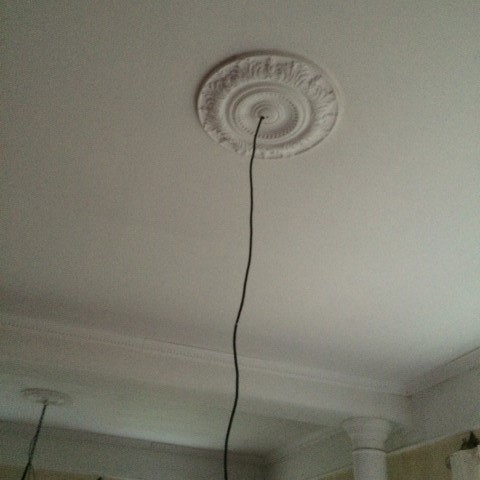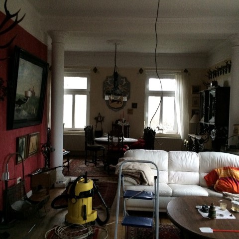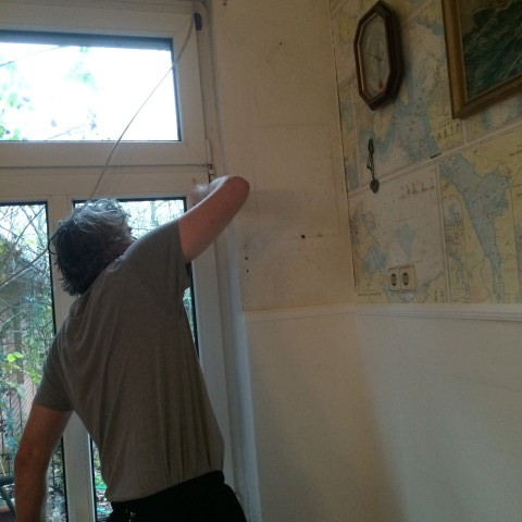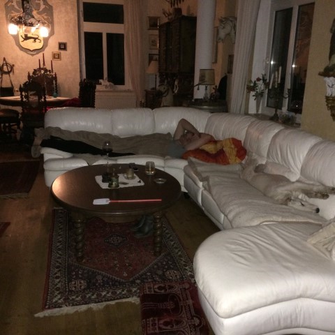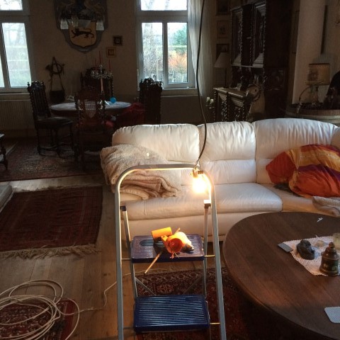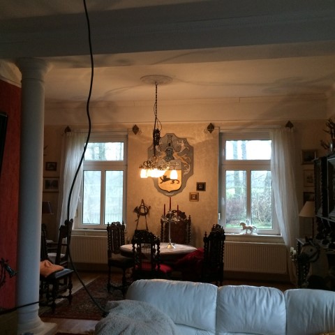 21.12.2014: Es ist zwar Sonntag, doch ein wenig Arbeit muß dennoch gemacht werden! Im Wohnzimmer wird Deckenlicht gelegt - hinten, am Esszimmertisch und vorne, wo sonst die alte Petroliumlampe hing. Nach ca 11 Jahren endlich Licht - von oben!!! Dank der Funktechnik! Und alle sind rechtschaffen müde! Auch der Kurzschluß, den wir seit dem 13. 12. hatten, wurde gefunden, Gott sei Dank, Weihnachten kann kommen!