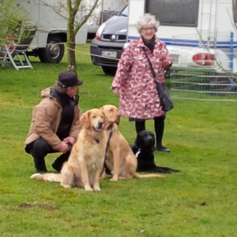 Alle helfen mit: Familie Bürgner kam extra, uns zu treffen! Der Ehrenring ist voll, wir waren unter den ausgewählten vier Hunden!