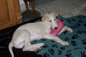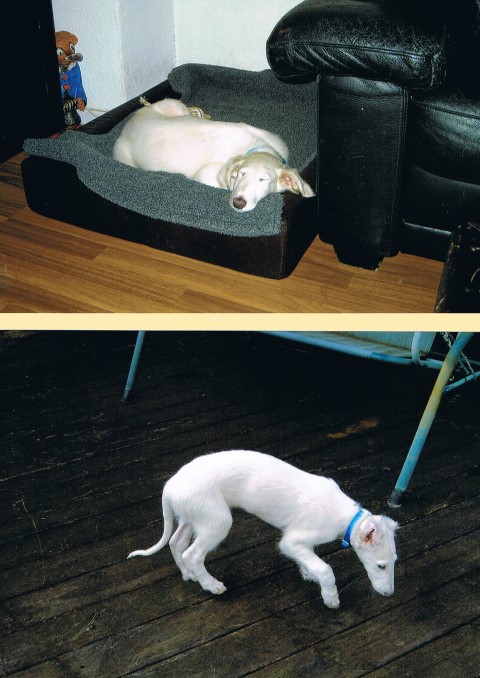 10.12.2014: Auch Macawi hat liebe Grüße geschickt. Ihm geht es sehr gut, er hat sich mit Takeshi angefreundet und genießt es, mit ihr zu kuscheln und über die Felder zu flitzen und auch, dass, wenn Frauchen ruft, er wieder umkehren muß! Macawi "wächst" jetzt die "Windhundhalsbandleiter" hinauf: erst Windspiel, jetzt Whippet..... .Es bereitet uns große Freude zu sehen, dass es allen "Kindern" gut geht. Macawi hat schon sein erstes Weihnachtsgeschenk ausgepackt und hat am "Auspacken" einen Riesenspaß. Noch ist Takeshi größer, noch!