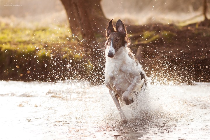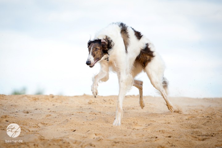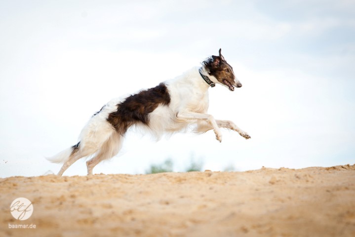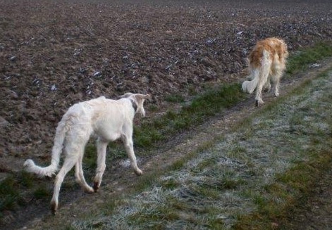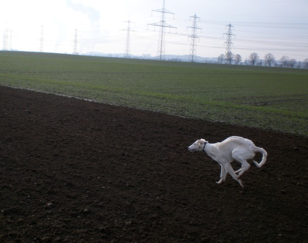 Aber auch Aquamarin mit seinen Freunden jagt über die Felder! Und dann im Barsoi-Gänsemarsch nach Hause!