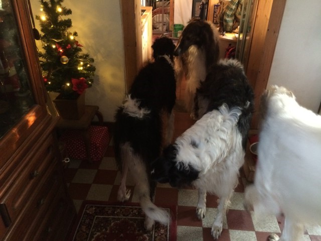 Unser Weihnachten! 22.12.2015: Heute bekam ich - völlig unerwartet - ein ganz besonders schönes, sehr persönliches Weihnachtsgeschenk: ![]() Ein handgemalter schöner Barsoikopf! Ich habe mich riesig darüber gefreut! Danke!!!! 18.12.2015: Heute war ein großer Tag für Berendaij, aber auch für Niemen! Beris Schwester und Niemens Frau Bohdana war bei uns zu Besuch! Alle Jungs waren ganz bezauberd und freundlich und vorsichtig! Bohdana legte sich nach ausgiebigem Spielen einfach hinter mich auf meinen Platz und fand das sehr angenehm - ich weniger, da ich kaum noch sitzen konnte. Sie darf uns gerne öfter besuchen, sie ist allerliebst. 15.12.2015: Mich hat es arg erwischt!!! Hier ein kleiner Teil der Medis, die ich schlucke! Alle 2 Stunden "belle" ich gnadenlos los, die Barsois bleiben z. T. schon nachts lieber draußen im Hundezimmer, die anderen verkrümeln sich weit vom Schlafzimmer weg, Achim schläft schon auf dem Sofa. Durch das permanente Husten bekomme ich schon einen "Sixpack", aber mit Schmerzen! ![]() 12.12.2015: Heute möchte ich schon mal vorab ein kleines Resümee ziehen, z. B über Niemens Kinder, er ist der Vater von 2 Würfen! Alle haben einen tollen Platz in ihren neuen Familien bekommen, und dass ist heutzutage sehr wichtig! Aber sie sind ja auch alle wunderschön und toll im Charakter, und da es ja so viele Barsoiwelpen und Junghunde gibt, die auf ein gutes Zuhause warten, ist es schön, dass alle unsere Kinder problemlos ein neues Zuhause fanden! Ich bin sehr dankbar dafür! 11.12.2015: Nessa ( Oblonka): Wie schön sie ist!!! ![]() Ein Foto von Niemens Tochter Pina, die jetzt in der Schweiz wohnt: ![]() Auch ihre Geschwister wohnen da jetzt. 10.12.2015: Ich freue mich! Ich habe ein schönes Hotel für Langerwisch gefunden und das wird unser "Saisonauftakt 2016"! Doch erst steht Weihnachten vor der Tür. Karin und ich haben schon eine Liste für das Weihnachtsessen erstellt, mh, das wird lecker! Und endlich ist sie da, die Urkunde für Opal!!! Und Achim zückte das Handy! ![]() ![]() 07.12.2015: Das Ende!!!! Nun, man sollte es besser wissen, doch man vertraut den "Lieben" immer wieder, wer mag schon einen "trockenen" Stutenkerl? Na, jetzt wissen wir`s! Ich hab`s! Wollt ihr auch noch was ab? Danke, war lecker! Ja, und das blieb über! Achim ist empört!!!! Aber wir sind nicht allein: Auch in Köln sind die Jungs sehr interessiert an der "Küche"! ![]() Zum Frühstück bekam Achim, nach alter friesischer Tradition, einen Stutenkerl! Und unsere Wollsau einen "Husumer Protest-Eber" namens "Bertus"! 06.12.2015: Es ist Nikolaus! Mal sehen, was er für uns mitgebracht hatte. ![]() Wieder zu Hause: Opal war so froh, seinen Freund Amethyst wieder zu haben! Erst leckten sie sich inbrünstig die Ohren, dann kuschelten sie ganz entspannt..... Kassel: Wir hatten einen schönen Abend und waren trotzdem gut ausgeschlafen, frühstückten alle 3 wieder lecker, chekten aus und fuhren zur Messe. Diesmal ging es reibungsloser durch den Einlaß, auch waren viele andere Barsois am Start, aber unsere Situation war ja ähnlich gleich wie gestern: 15 Monate, jetzt 3 Tage! Doch jetzt waren die vielen Afghanen vor uns. Wir hatten somit reichlich Zeit. Schöne Gespräche, wie auch am Vortag, verkürzten unsere Wartezeit. Ich konnte Achim nicht erreichen und machte mir viele Sorgen! Doch dann mußten wir in den Ring, und: Amethyst gewann wieder! Welch ein Glück!!! Er bekam sogar in Stechen das Res.-CAC und als besonderes Nikolausgeschenk erben wir das CAC! So hat er nun das 2., jetzt internationale VDH! Aber die Sorge um Achim ließ uns nicht los, wir fuhren sofort heim! Gott sei Dank ging es Achim wieder etwas besser, das wichtigste Geschenk! ![]() Aber hatte noch einiges mehr für uns als Überraschung bereit: Neue Bilder von einem ganz besonderem Banditen und seiner Gang, Aquamarin!