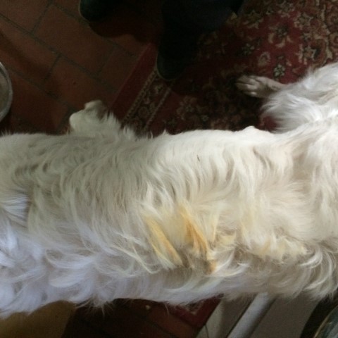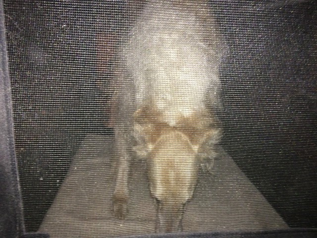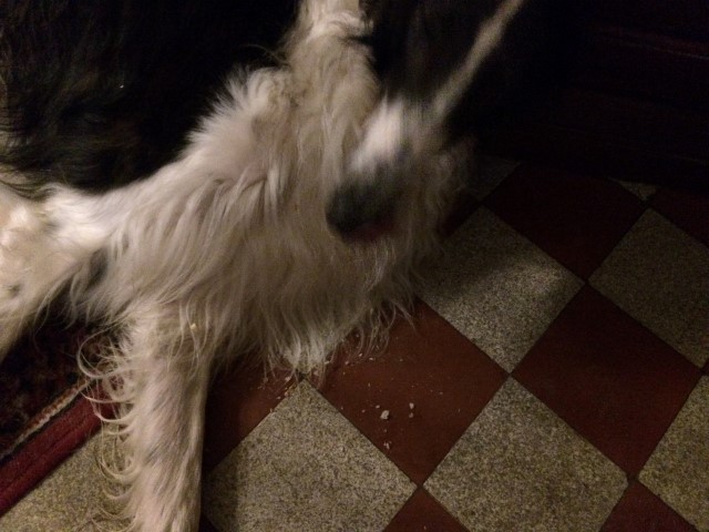 05.04.2015: Ich war zum Osterfeuer! Es war sehr, sehr schön! Anschließend haben wir gegrillt, und wieder zu Hause haben die Barsois ein "Ostermahl" serviert bekommen. Soweit, so gut. Ich habe, da es doch recht kühl war, wie üblich, den Ofen und den Kamin angezündet. Aber einer unserer Hunde ist richtig blond. Nun nicht mehr!!! Mir fällt dazu nichts mehr ein.