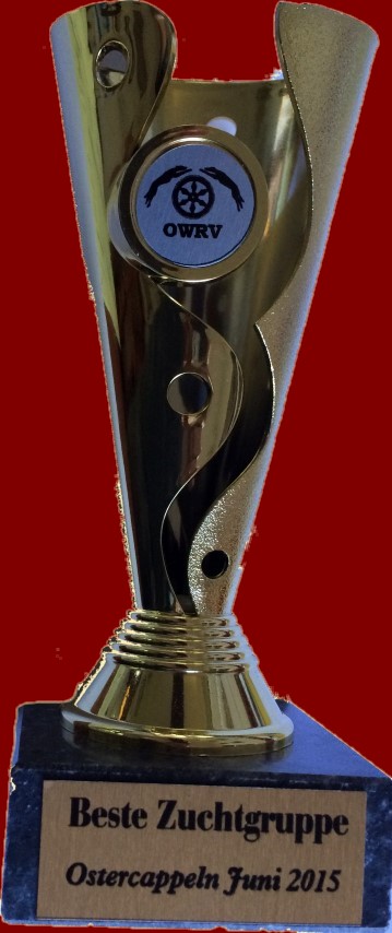 06.06.2015: Achim, der statt letzter Woche erst gestern Abend wieder von Bord nach Hause kam, hatte Ruhe nötig, so fuhr ich mit 4 Hunden allein nach Ostercappeln. Doch mich tröstete, dass ich in Ostercappeln viele Freunde treffen würde. Beim Aussteigen der Hunde verpaßte mir Nabat einen "Kinnschieber"! Ich sah Sterne! Man, haben die auch doch harte Köpfe!!!!! Doch dann war es ein Tag, wie aus dem Bilderbuch: Das Wetter wurde wunderschön, wir konnten uns sonnen und Fokko holte sich auch einen Sonnenbrand! Alles war ganz entspannt! Amethyst und Achat sind jetzt gerade in die Jugendklasse gerutscht und wir sind sehr glücklich über ihr Debut: V1 und V2. Amethyst wurde Landesjugendsieger und erstach das Jugend-BOB! Im Ehrenring kam er unter die ersten drei!!! Opal und Niemen bekamen auch beide ein V1, nur Nabat mußte ich wieder, wie immer, durch den Ring ziehen. Es war der letzte Versuch, in der Hoffnung, dass er seine Meinung zu Ausstellungen noch einmal überdenkt. Und ja, mit will er gerne, doch nein, zum Kreis-laufen, dazu hat er absolut keine Lust. Und so freue ich mich sehr, dass er mit V3 platziert wurde! Es ist ja nur natürlich, wenn man sich über freut, wenn die Hunde gut abschneiden, das tu ich auch sehr, aber wir alle wissen, wie schnell sich das Blatt wieder wenden kann. Wir haben wieder - leider ohne Mitstreiter - die Zuchtgruppe gewonnen, doch unsere Richterin, Frau Marpe, befand, dass es auch ohne Konkurrenz eine tolle Gruppe ist! Wie üblich hat Christoph alles bekommen, was er sich wünschte und Ludwina und Christian bekamen das Vet-BOB, somit ist die Hündin auch Vet-Champion! Alle waren glücklich, welch ein schöner Tag!