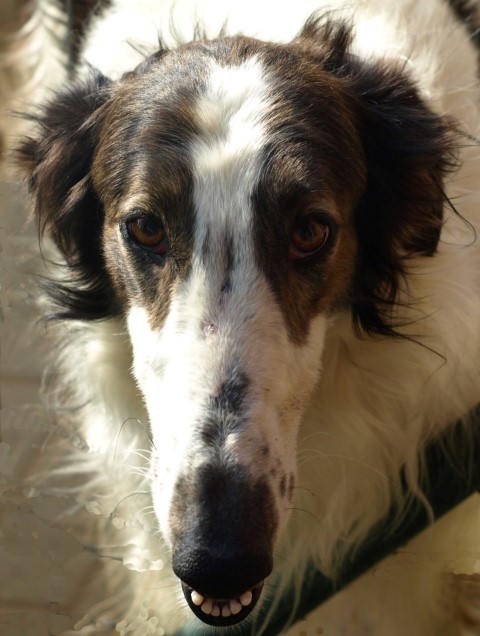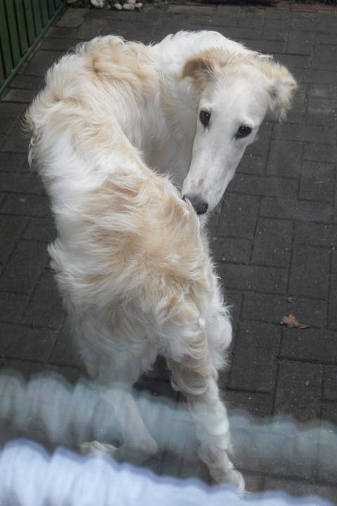 13.05.2015: Zu Besuch bei Ludger und Anne in Bühren: Eine süße, wunderschöne Barsoidame sucht noch ein liebevolles Zuhause: Panja! Schaut sie Euch an: Ma Cherie,wer kann dazu schon "nein" sagen! Ein Köpfchen, aber mit was für ein schönes!