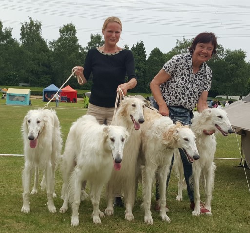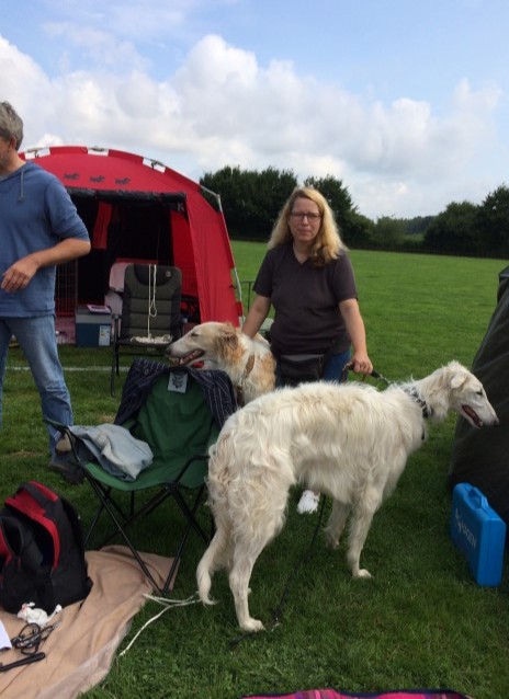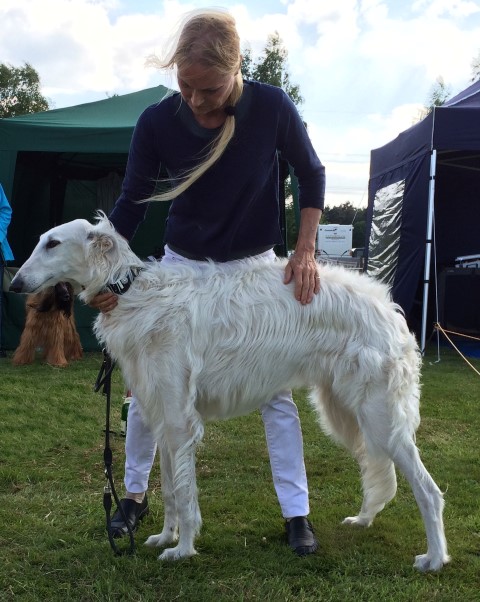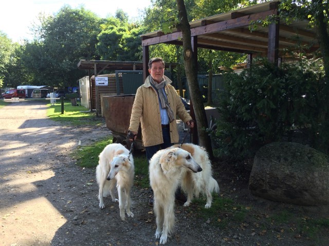 30.05.2015: Sehr früh starten wir nach Issum! Mit brauchten heute "nur" Opal und Niemen. Fokko fuhr mit mir, und ich war sehr froh über seine Gesellschaft! Als ob es so sein sollte, parkten wir alle nebeneinander! Das Wetter war Aprilwetter: Sonne, Regen, Sturm und Hagel wechselten sich ab und so kuschelten wir alle in 2 Zelten auf engstem Raum mit unseren Hunden! Kommunikation pur! Es war einfach ein wunderschöner Tag für uns alle. Und auch waren wir glücklich über unsere Ergebnisse! Achat hat das Jüngsten-BOB bekommen, Opal erreichte das 3. CAC aus der Zwischenklasse heraus und ist jetzt auch beim DWZRV-Championat in der Warteschleife, Niemen wurde 3.! Sandra und Chris freuten sich sehr über Achats Erfolg, und ich natürlich auch!! Ebenso war Claudia froh über ihren Erfolg und auch Christoph und Frank waren mit ihren Windspielen sehr gut ( sind sie immer ): BOB etc! Ich hatte schöne Gespräche mit Freunden, und als wir endlich gegen 21:00 h wieder zu Hause waren, waren die Hunde und ich "platt"! Aber, welch eine Begrüßung von den zu Hause gebliebenen!!!! Einfach toll, da geht mir das Herz auf! Katai vergaß sogar seinen momentanen "Auah-Fuß"!Ich liebe sie alle sehr! Im Gegensatz zu Christoph und Frank waren wir mit den Barsois durch und gönnten uns einen heißen Kaffee.