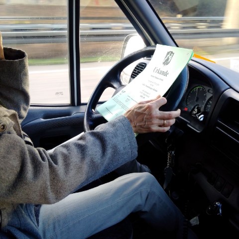 01.06.2015: Der Monat fängt ja wirklich gut an! Alles kaputt! Was ist passiert: Unsere fahrbare "Hundehütte" hatte heute, ganz allein, ohne uns, einen Unfall! Der arme Kerl! Das Auto, liebevoll von uns unser "Shire" genannt ( weil es so groß und hoch ist, wie eben ein Shire horse, im Vergleich zu unserem anderen Auto, das eher an unsere Vollblüter erinnert ), wurde von einem bösen Lastwagen angefahren! Ich hatte Shire ordnungsgemäß auf einem Parkstreifen abgestellt, weil ich mit zu unserem Pferdezuchtverband fuhr. Der Unfallfahrer hat sich fairerweise bei der Polizei gemeldet, die mich telefonisch benachrichtete: "Nichts Schlimmes, nur Sachschaden!!!" Und so haben wir jetzt nicht nur ein rostiges, sondern auch noch ein verbeultes, lediertes Auto! ( Ich kann mir gut vorstellen, dass viele sich schon gewundert haben, wenn ich mit unserem weiß-rostrotem Shire neben den schönen neuen Autos und tollen Wohnmobilen auf den Ausstellungen parke! Aber Shire ist so praktisch und so tapfer, trotz seines Alters, und wir haben ihn immer wieder für viel Geld am "Leben" erhalten, weil wir irgendwie an ihm hängen! ) Als ich dann wieder vor Ort war, ihn sah und mit ihm zur Polizei fuhr, muß ich wohl die hintere, ledierte Stoßstange verloren haben! Jedenfalls habe ich auf der Rückfahrt so was in der Art am Straßenrand liegen sehen, wußte aber nicht, dass das vielleicht seine ist. Das erahnte ich erst zu Hause, als ich feststellte, dass Shires jetzt fehlte, die beim Einsteigen noch dran hing! Nun werde ich sie morgen suchen fahren! Hoffentlich liegt sie noch dort, wo ich was Ähnliches liegen sah, und hoffentlich ist sie es auch! Doch irgendwie verfügt es - obwohl sehr ärgerlich - über eine gewisse Situationskomik! Und ich bin froh, dass ich darüber auch noch wirklich lachen kann! Doch: Ich hoffe, wir kriegen Shire wieder hin! ( Es ist physikalisch ja so: Rost macht leichter, und leichter macht schneller! Irgendwie muß ich ihn ja rechtfertigen! ) Ich bin sehr glücklich, dass Niemen, wie auch im Jahr zuvor, zu den erfolgreichsten Ausstellungshunden des DWZRV gehört. Er ist auch im Umgang ein richtiger Schatz!