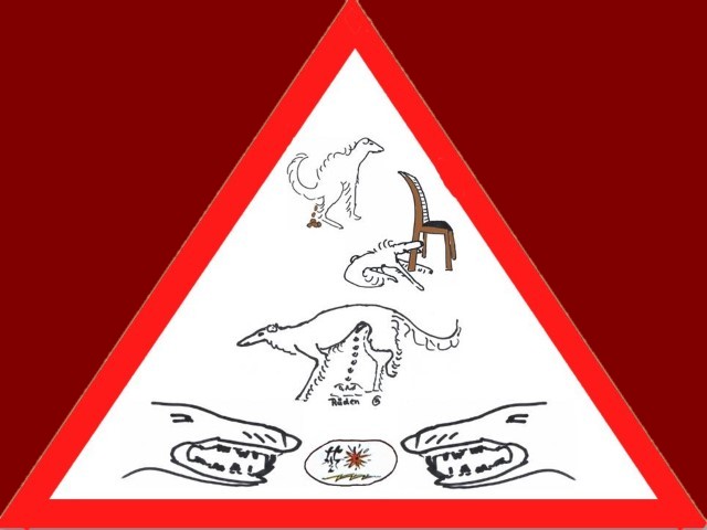 18.02.2015: Ein ereignisreicher Tag/Abend: Zuerst die Geschichte mit den Regeln für die Hunde und dann das online-Seminar über BARFen vom VDH! Obwohl gut beschrieben, hatte ich, die eigentlich sehr gut mit dem PC klarkommt, und die ich im Job sehr häufig mit dieser Art Seminare zu tun hatte, tatsächlich meine Schwierigkeiten, mich dort einzuwählen! Somit habe ich die erste Vierteilstunde verpaßt, bis ich endlich "drin" war. Auch, wenn man sich recht gut mit diesem Thema auskennt, so hofft man doch, immer noch wieder etwas dazu lernen zu können. Es gibt Regeln, gegen die auch der kleinste, noch der liebste Barsoi im Haus nicht verstoßen darf: