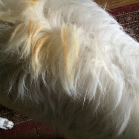 Aber auch so schöne Bilder von Alpha-Macawi: Macawi kann seinen Vater Niemen nicht verleugnen: Er bekennt "Farbe"! Besonders schön sind die weißen Haarspitzen auf dem Creme!