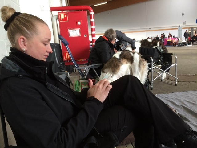 03.04.2015: Endlich in Hoope angekommen! Zu Hause hatte ich noch ordentlich mit Amethyst Streit, aber er mußte ihn beilegen. Wettermäßig hatten wir Glück. So war das alles ganz gut! Aber das Beste war, viele liebe Freunde wieder zu treffen! Und das war der Fall: Ich kann sie nicht alle aufzählen, aber alle Lieben waren da! Auch ausstellungsmäßig haben wir ganz gut abgeschnitten, doch wir waren dann auch alle froh - nach einem sehr langem Tag -, wieder zu Hause zu sein! Bei uns war es um 21:00 h!