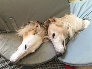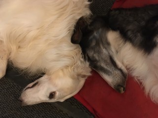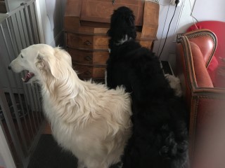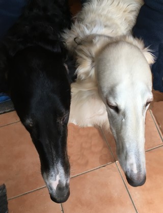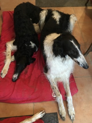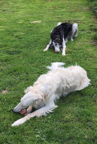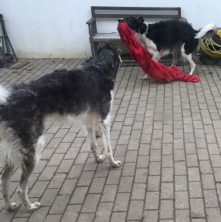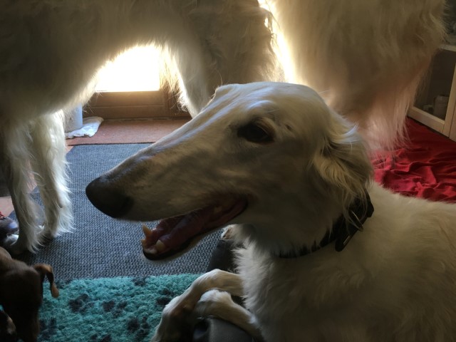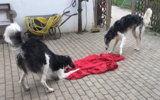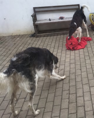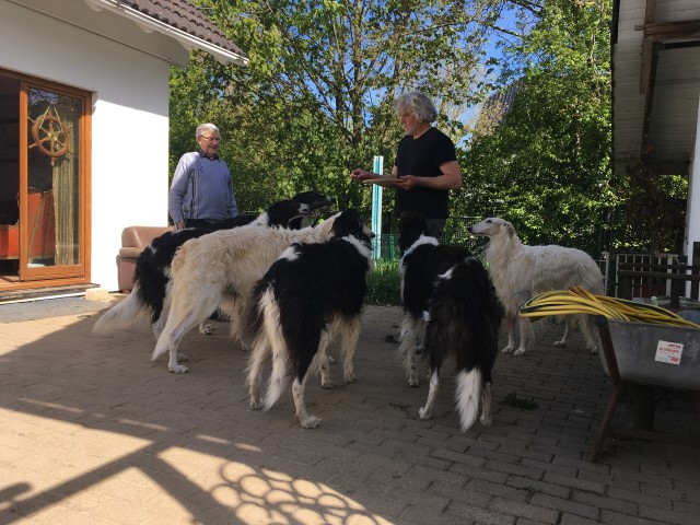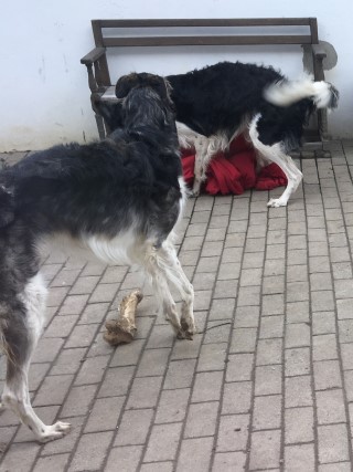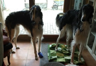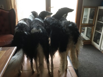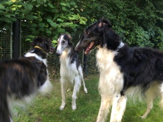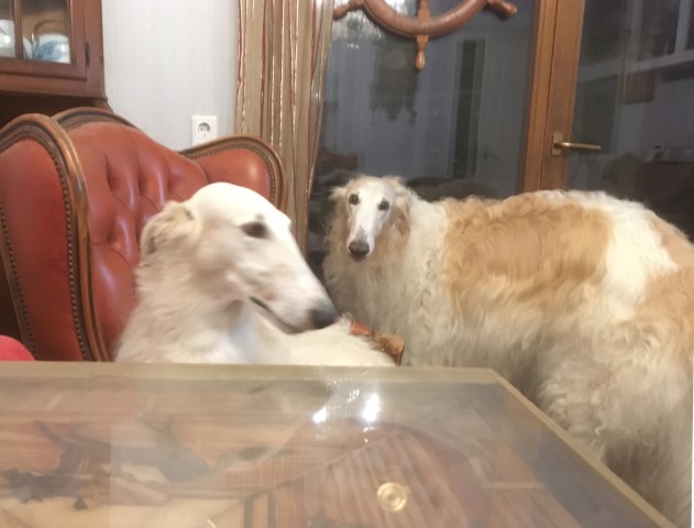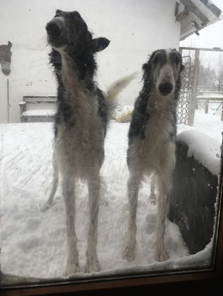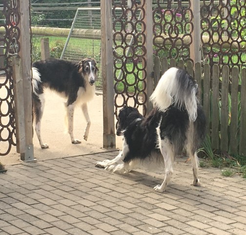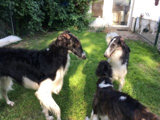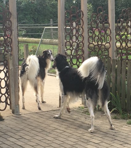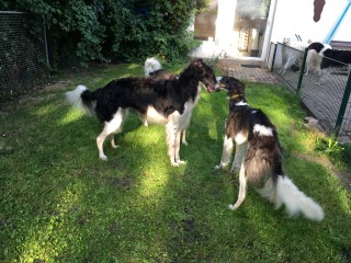 Und dann wollen die Barsois raus! Hier Brilliant und B-Knjas: 2 lange Nasen, eine länger als die andere!