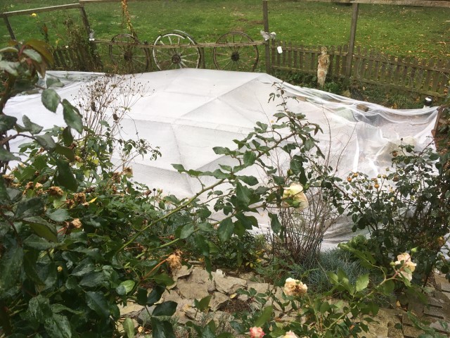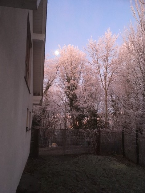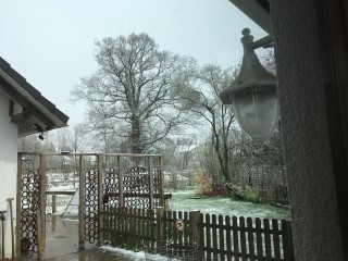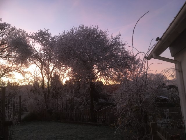 29.11.2021: Heute Morgen war alles weiß! Oh nein, viel zu früh, es sind noch einige Pflanzen draußen, die zwar ein paar Minusgrade vertragen, doch es muß ja nicht sein!