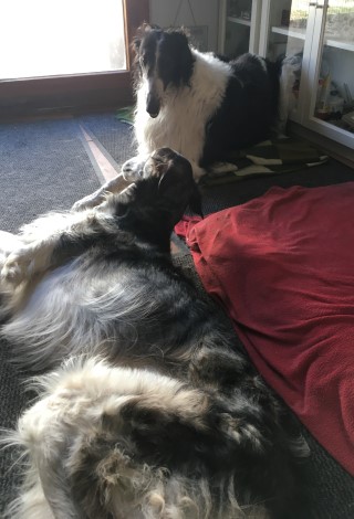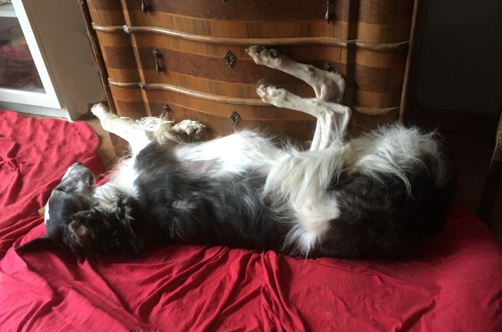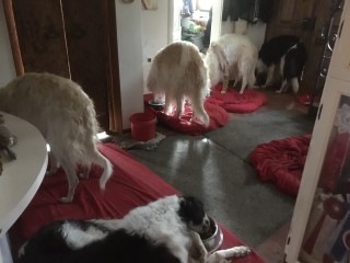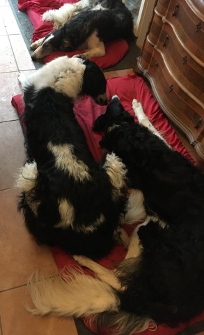 Hundebetten neu bezogen, Decken gewaschen, alles durchgeputzt, sauber! 10 Minuten später kamen die lieben 7 wieder rein...... ! Alles wieder auf Anfang!!! 04.01.2021: Morgens, nach dem ersten Pieselgang der lieben 7!
