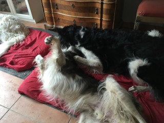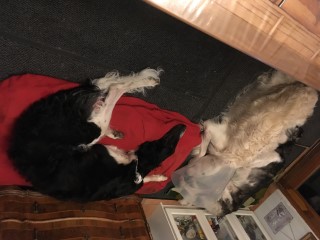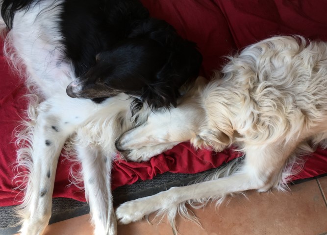 Unsere 2 "Schwarzen": Paul und sein Cousin Knjas! Und auch so kann man gut schlafen: Brilliant und Amethyst.