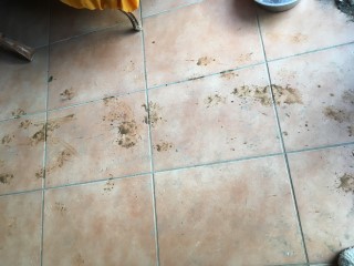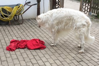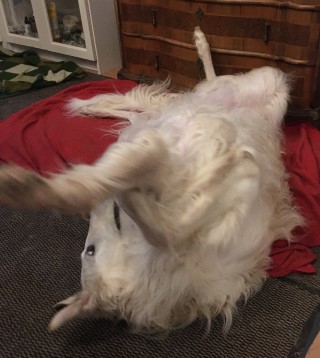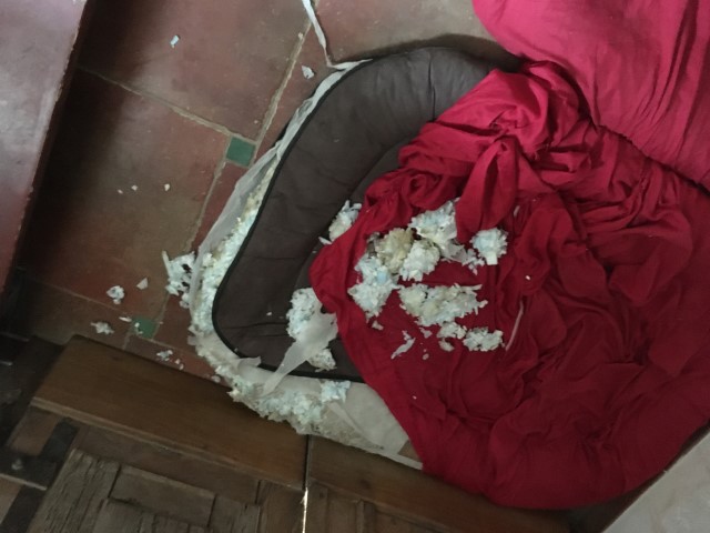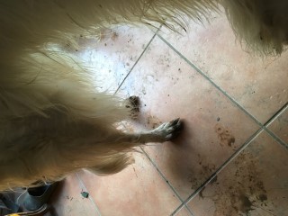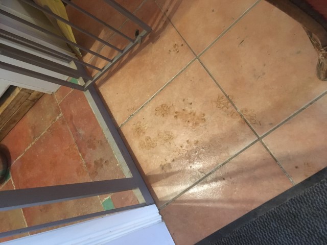 Und latsch, latsch ist alles schön dreckig. Also putzen, putzen, putzen! Und Hundebetten waschen, waschen, waschen! Ich hasse es!