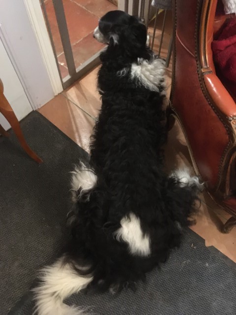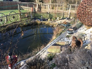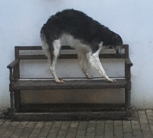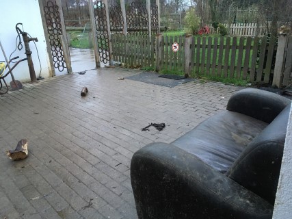 08.02.2021: Es reicht! Mit 10 Ausrufezeichen! Das "Kleine Volk" hinterläßt nur Desaster und Zerstörung! Knjas rauschte quer durch den Gartenteich! Opal ist entsetzt, zu recht! Ich hoffe, die Kois sind nicht aufgeweckt worden! Mist-Strampelsack, dieser Knjas! Doch Beryll ist keinen Deut besser, er verkrümelte sich auf der Empore! das Büro ist tabu für alle, auch für hauseigene Barsois!!!!