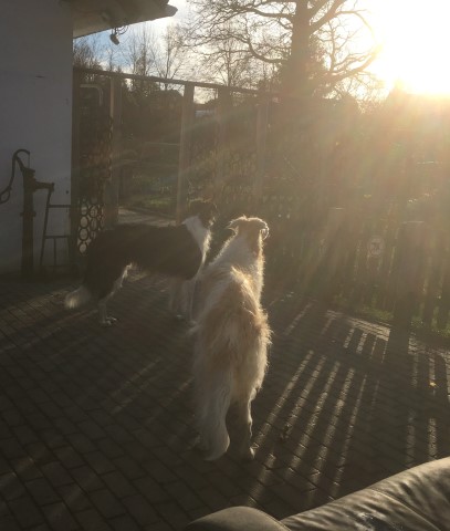 24.12.2021: Heute hatten wir Besuch von einem Ausstellungsfreund und Freundin, und unsere Jungs Besuch von Golubka. Sie ist eine schöne Maus und hat alle sichtlich beeindruckt! Alle waren hin und weg! Doch unsere Jungs sind richtig gute Kavaliere, immer schön zurückhaltend, ich bin sehr stolz auf meine Lieben! Es war ein schöner Nachmittag, wir haben viel erzählt und viel gelacht! Und auch unsere Barsois hatten viel Spaß, sie haben gespielt und sind gerannt wie der Teufel! Golubka ist verdammt schnell! Das war richtig Klasse für die Kondition! 23.12.2021: Wir waren beim Tierarzt und haben Brilliant auf Herz und Drüsen untersuchen lassen. Einen besonderen Grund gibt es dazu nicht, doch immerhin gehört es sich für einen gekörten Rüden so. Einige Ergebnisse haben wir gleich bekommen, einige werden uns später mitgeteilt. Natürlich gehen wir davon aus, daß alles in Ordnung ist, doch trotzdem bleibt immer ein aufgeregtes Gefühl. 22.12.2021: Heute früh fuhr Achim in unsere kalte Heimat, Vater und Verwandte besuchen, ich hüte Haus und Hunde! Wunderschön, dieser Wintermorgen, nachdem wir 3 Tage lang nur von Nebel umgeben waren.