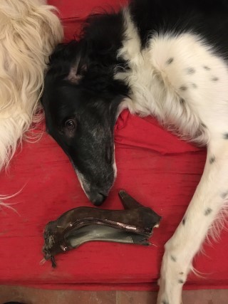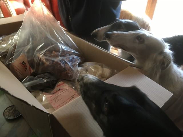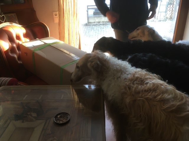 Somit haben wir 4 Rüden mit FCI-CACIL-Lizenz und auch 2 Hündinnen! Knjaginia hat die Renn-und coursing-Lizenz! Ach, wir alle freuen uns schon sehr auf das "Neue Jahr 2022"!! Opal`s und Amethyst`s Kinder wollen zeigen, was sie können, damit die Papas stolz auf sie sein können. Wobei, Amethyst`s Mädchen hat das ja schon getan! Der Weihnachtsmann klingelt und bringt ein Paket: