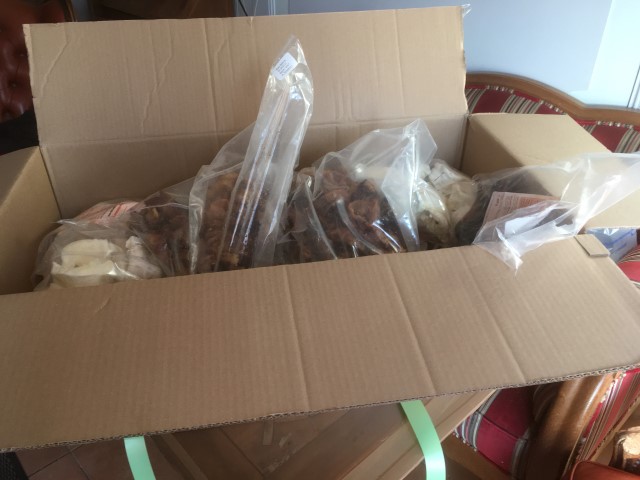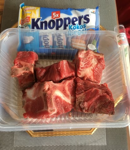 Achim ist wieder an Bord, und ich deckte uns vorsichtshalber mit Essen ein. Was heißt Essen, alles nur für die Hunde!