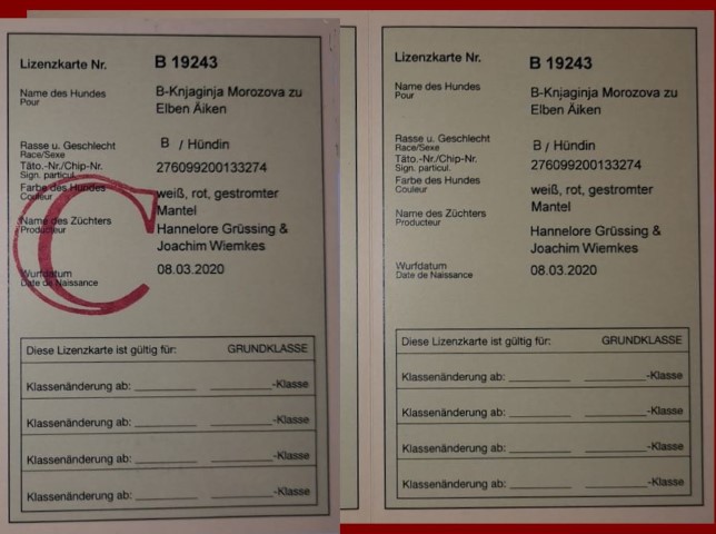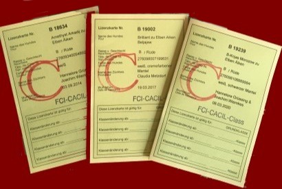 10.12.2021: Beryll`s Lizenzkarte ist da! Ich freue mich sehr, auch - wie bei Amethyst, Brilliant und Knjas- FCI-CACIL-Lizenz!