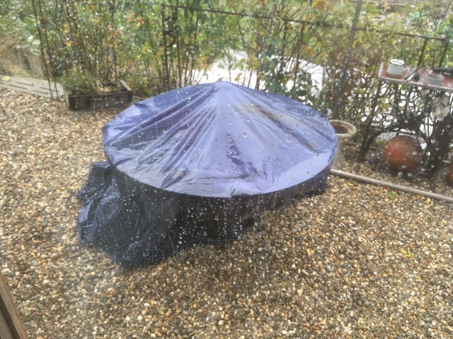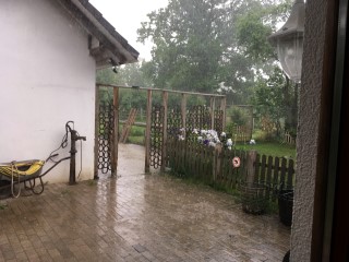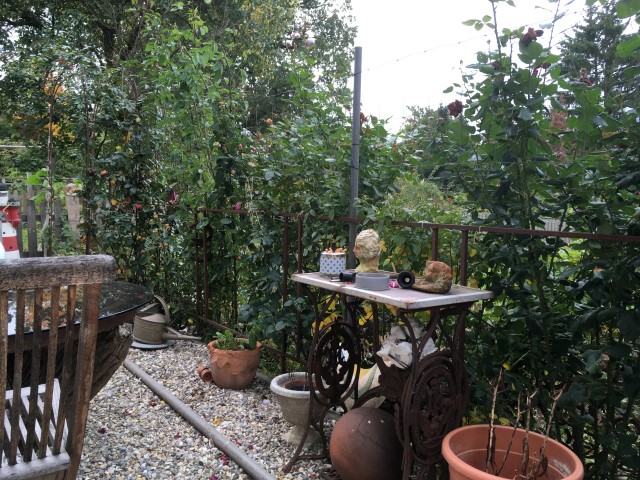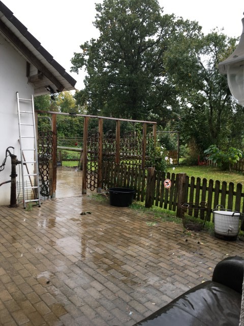 Dumm, ich hatte die Kerze zwar aus gemacht, jedoch nicht vom Tisch geräumt ....... ! Mehr muß ich - denke ich mal - nicht mehr sagen! Im Wohnzimmer knistert der Kamin und verströmt angenehme Wärme im ganzen Haus. Draußen regnet es, wir habe inzwischen alle Gartenmöbel und Deko eingeräumt, jetzt sieht alles trist aus, passend zum Wetter!