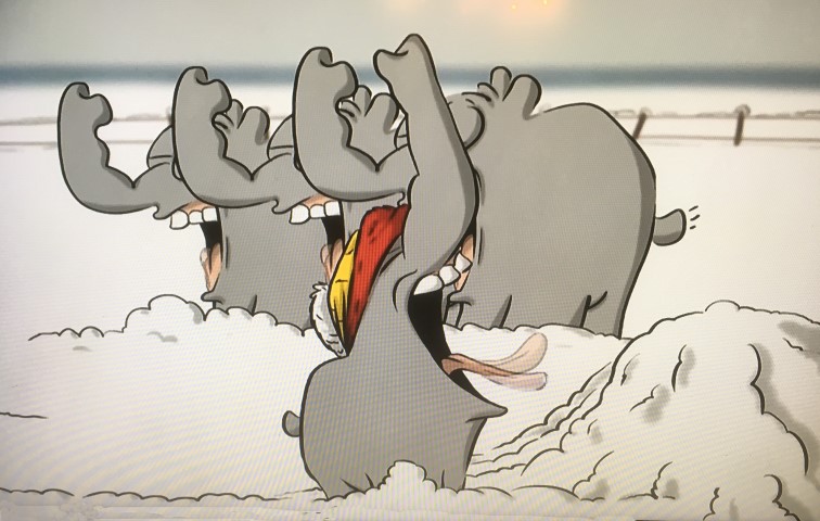 Die drei jungen Wilden spielten morgens noch ausgelassen im Schnee, doch am Mittag setzt der angekündigte Regen ein, Amethysts Schirm ist ganz nass! Schöner "Rosenmontag", doch, obwohl alles abgesagt ist, verteile ich trotzdem "Kamelle" ( in Form von Minifrikadellen ). Ich bin bei den Barsois jetzt das beliebteste Rudelmitglied.