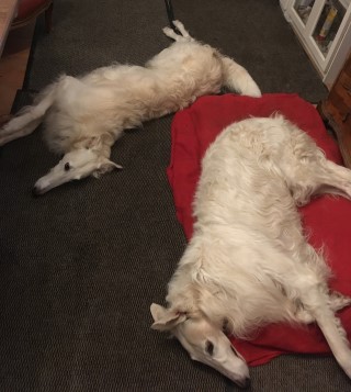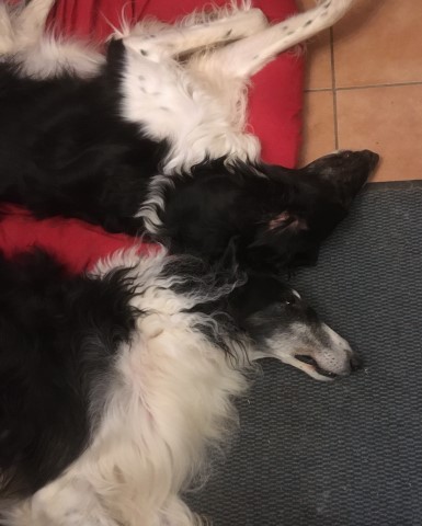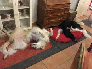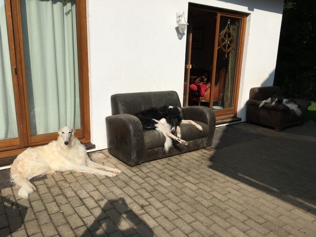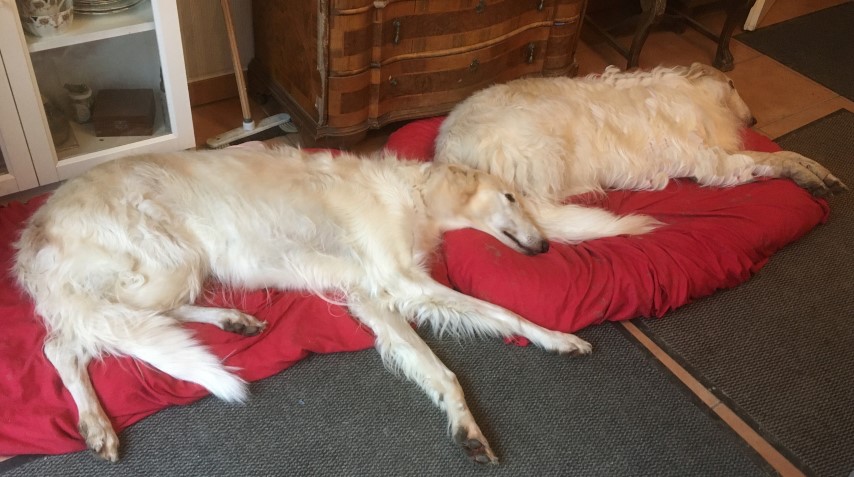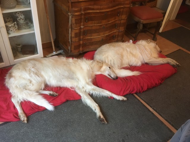 Mittenmang liegen die Barsois und pennen in aller Seelenruhe! Nerven wie Drahtseile!
