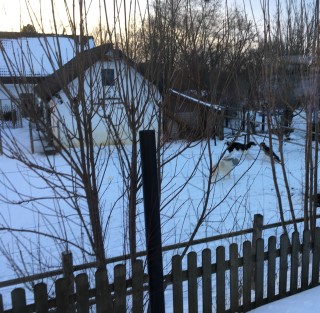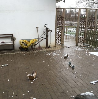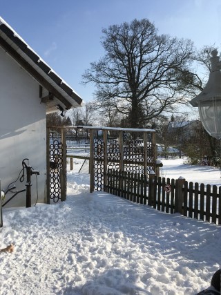 09.02.2021: Es schneit immer noch etwas, doch hin und wieder findet die Sonne ein Wolkenloch, durch das sie einen kurzen Blick auf unser Grundstück werfen kann: Vertrauen ist gut, Kontrolle ist besser, zumindest bei unseren Lieben, damit die "Verbrechen" ans Licht kommen! Gute Sonne!