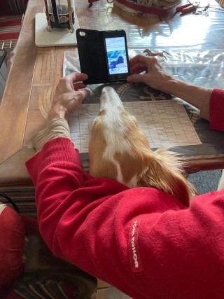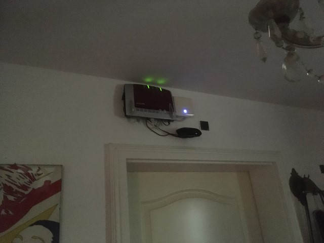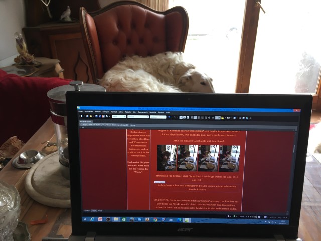 Achim hat inzwischen die Nase voll vom schlechten internet und hat den Router aus dem Büro nach unten verlegt. Huj, jetzt geht`s aber.... ! Und unsere Telefonfeststation ist auch dort angesiedelt, das ist für mich gut. Die "bösen, zerstörerischen" Barsois kommen da NICHT dran, das ist wichtig.