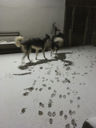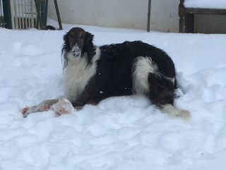 Doch jetzt, 20 vor 22:00 h, fängt es doch tatsächlich noch an zu schneien! Die Barsois freut das, und weg!!!