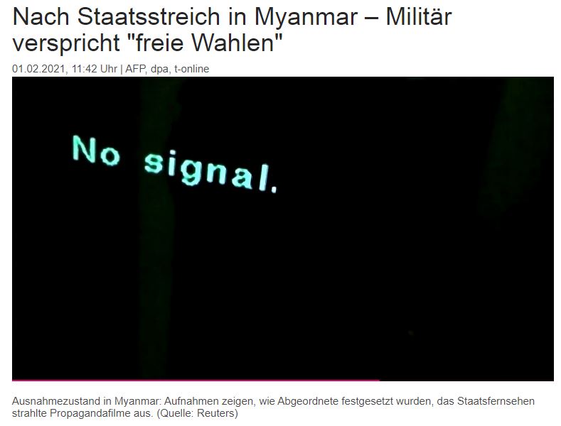 Das Militär hat natürlich auch das internet lahmgelegt! Schade, dann können sie ja gar nicht mehr meine website lesen!!! ( Scherz! )