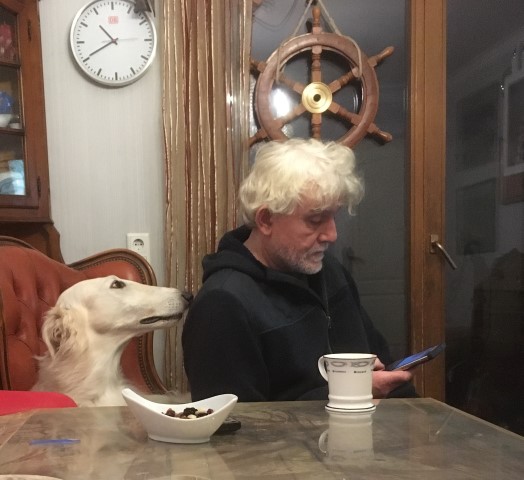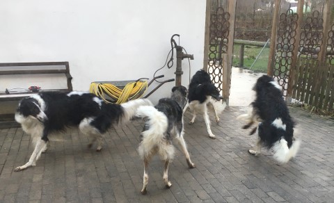 30.11.2021: Über Wetter spricht man nicht, man muß es ertragen! Und nicht nur wir, auch unsere Barsois, sie wollen nicht raus. Ich befürchte, die Blasen platzen bald! Achim will trotzdem die dreckigen Matten säubern, naß auf naß!