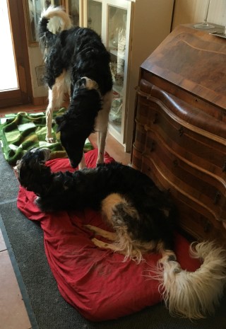 12.01.2021: Ganz dumm gelaufen! Es war nicht Knjas, der den Schleifenschrank angenagt hat, sondern Beryll, den ich heute Morgen auf frischer Tat ertappt habe! Natürlich habe ich mich bei Knjas entschuldigt! 11.01.2021: Die Ermahnungen, die Möbel in Ruhe zu lassen, haben gewirkt!
