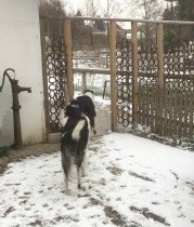 16.02.2021: Es taut! Das bedeutet: Ein grauer Tag, kein Sonnenschein! Schade. Beryll hat einen großen Knochen von draußen reingetragen. Erst kaut er ihn, dann Knjas, Als alle wieder raus wollten, nutzte Amethyst die Gelegenheit und schnappte sich ihn. Friedlich liegen die anderen drum rum.