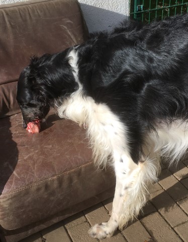 Und nein, Odaloij wurde NICHT verletzt, das ist nur ein großer Rinderknochen! Paul schnappt sich einen leckeren Suppenknochen!