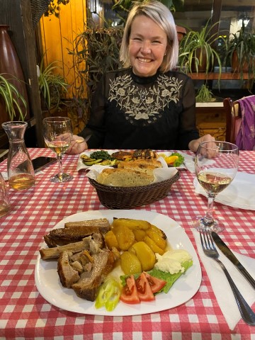 Kalten freut sich Achim auf ein leckeres Essen. Ein Küßchen von Brilliant