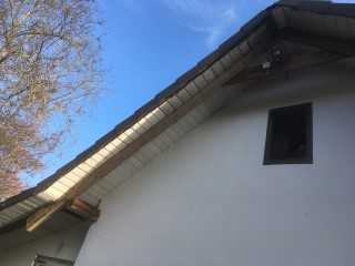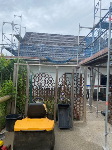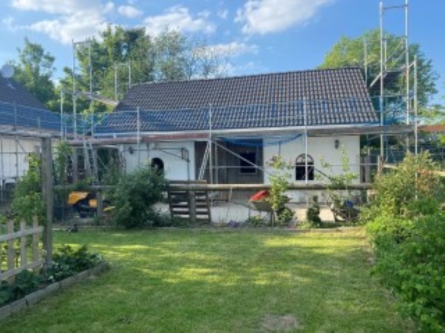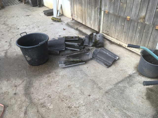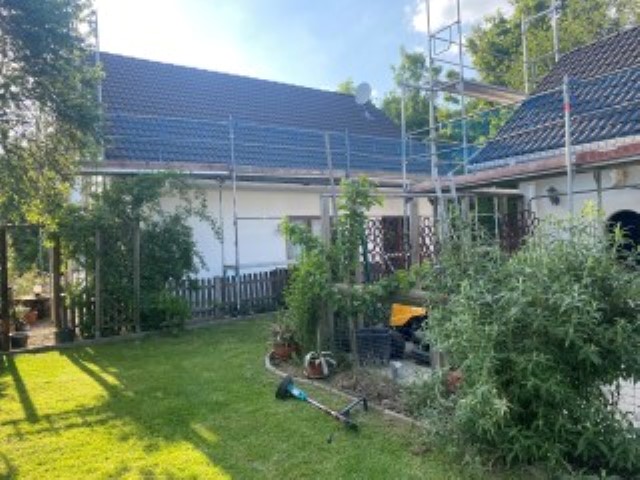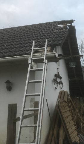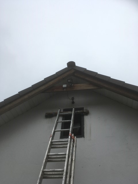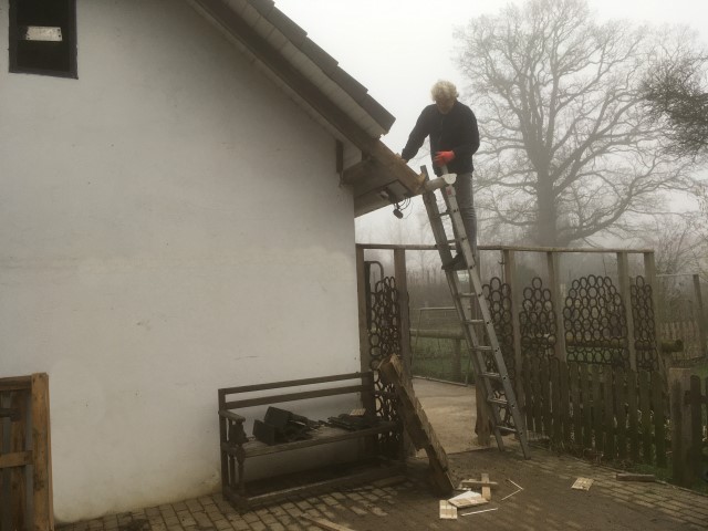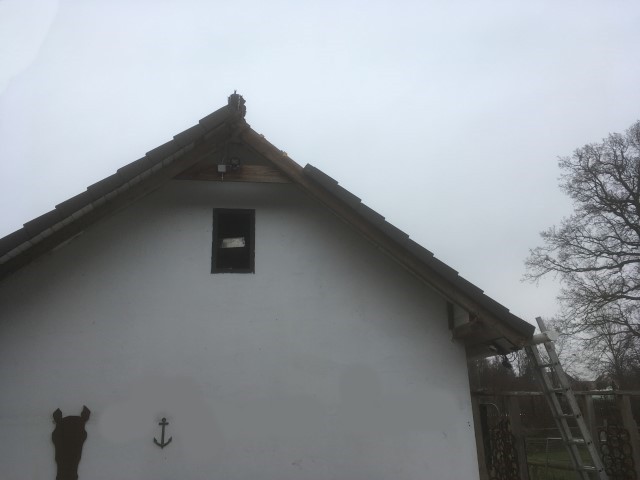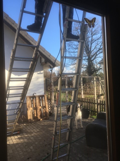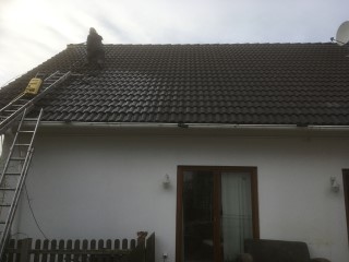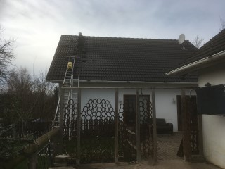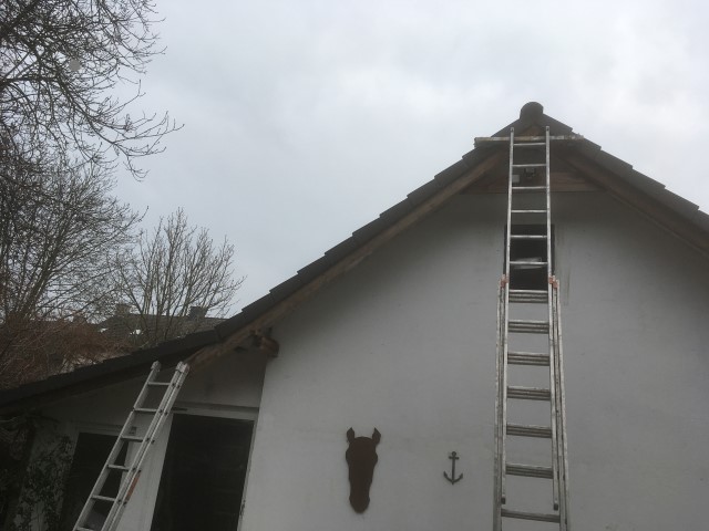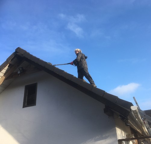 scheint und Achim reinigt das Dach von Haus und Pferdestall, denn hier