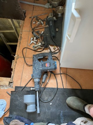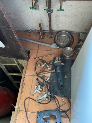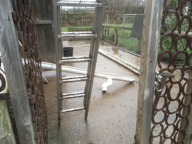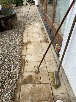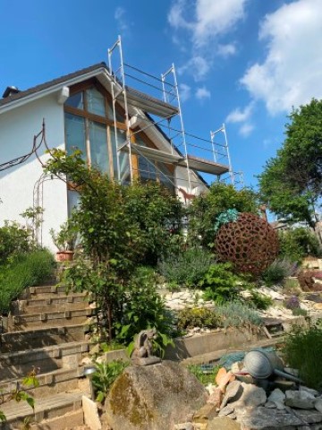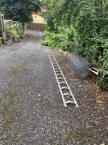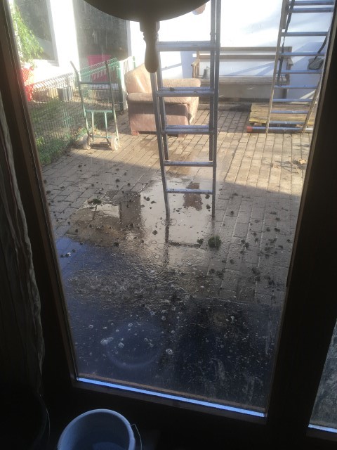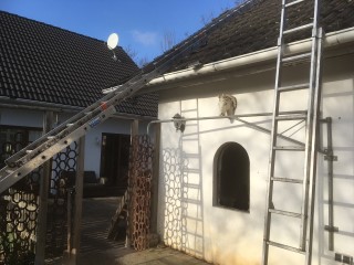 Die Leitern stehen, der Hochdruckreiniger steht