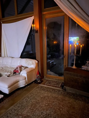 sieht deutlich, wer zuletzt drauf gesessen hat. Und die Tür nach draußen,