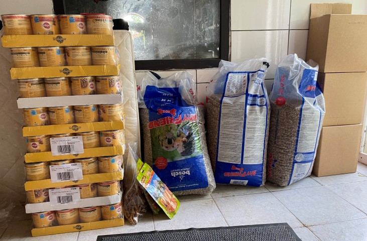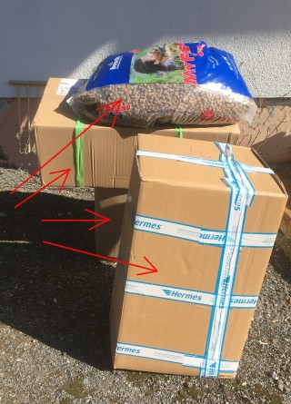 Hund mehrfach mit tollen Paketen voller Leckereien! Einfach so! Aus