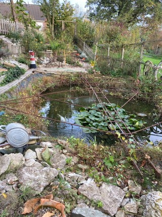 Achim hat aus unserer alten Dinklager Teichabdeckung eine neue geschweißt,