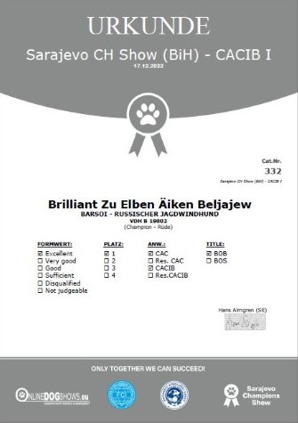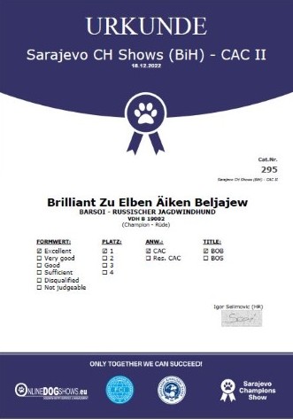 VDH, Chamion Bosnien-Herzegovina, Grand Champion of Bosnien-Herzegovina,