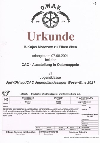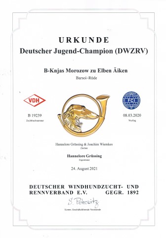 Jugendchampion VDH und DWZRV geworden, hat etliche andere Titel gewonnen,