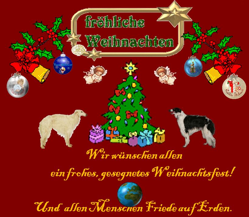 Ein letztes Mal in diesem Jahr schreibe ich ein paar Zeilen auf diese Seite! In ein paar Stunden gehört sie der Vergangenkeit an. Vieles, was wir uns im letzten Jahr an genau dieser Stelle gewünscht haben, ging nicht in Erfüllung! Doch Vieles, was wir gar nicht erwartet haben, trat ein, im Guten wie im Schlechten! Wir z. B. blicken in großer Dankbarkeit auf unsere Familie! Alle sind noch da, allen geht es gut! Uns auch! Wir leben noch alle, und das gar nicht so schlecht! Das führe ich mir persönlich, angesichts der Katastrophen um uns herum, immer wieder vor Augen! Und das erfüllt mich mit Dank und Demut! Und wie es sonst im Leben so ist: Türen schlugen zu, andere, viel bessere, öffneten sich! Und so wünschen wir allen ein frohes, friedfertiges Neues Jahr 2024! Die "Barsois zu Elben Äiken" mit Hanna und Achim!