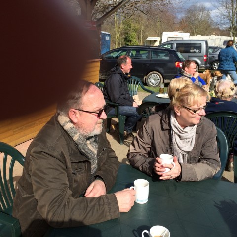 Ab 16 Uhr konnten wir endlich weg, und dann haben wir es uns mit Gin Tonic und später, nach dem Essen, mit Sekt es gemütlich gemacht, Grund zum feiern hatten wir ja: Alles gur überstanden und in der Veteranenklasse Platz 3 und 5 gemacht bei den Salukis. Am nächsten Morgen hieß es: Früh aufstehen und Heim fahren. Die Fahrt zurück, und ein letztes Abschiedsfoto, und das Versprechen, alles wieder genau so zu machen. Bis zum nächsten mal, versprochen!