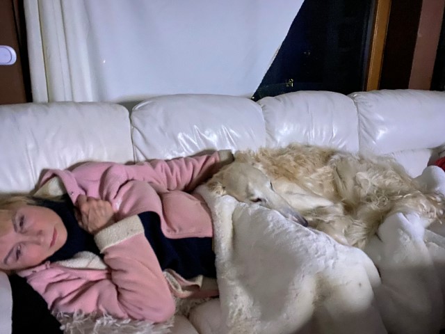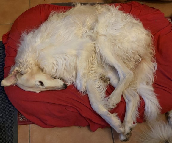 23.12.2023: Es ist früh, 00:23h und ich kann nicht schlafen! Immer noch müssen die Barsois raus und wieder rein! Ich denke an meine liebe Mam! Und 3 x am Tag muß Amethyst seine Pillen nehmen, alle 8 Stunden. Die Polizei und die Feuerwehr waren an der Brücke, weil ein Baum abgebrochen war und die Straße versperrte. Wir waren einkaufen, Hundefutter! In 3 Läden war es ausverkauft! Was ist nur los in Hundedeutschland? Wird kein Futter mehr produziert, oder wurde alles aufgekauft und gespendet, oder wo bleibt es? Im 4. Laden haben wir was bekommen, Weihnachten ist gesichert!